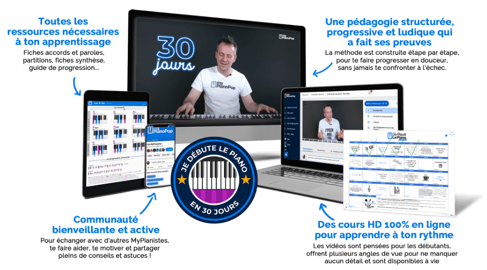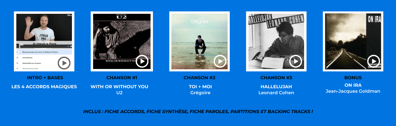 OFFRE LIMITÉE à -50% : Ajoute le cours « S’accompagner en chantant au piano » à ton achat pour seulement 67€ au lieu de 127€ normalement. Le cours idéal si tu rêves de pouvoir chanter (avec justesse) et jouer au piano en même temps ! Si tu souhaites en profiter, COCHE CETTE CASE pour l'ajouter maintenant à ta commande !